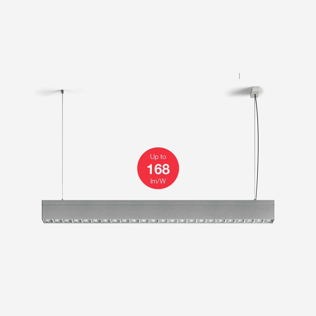 - Individual suspended elements equipped with lux and motion sensors L=1300 / 2500 / 2600 mm.