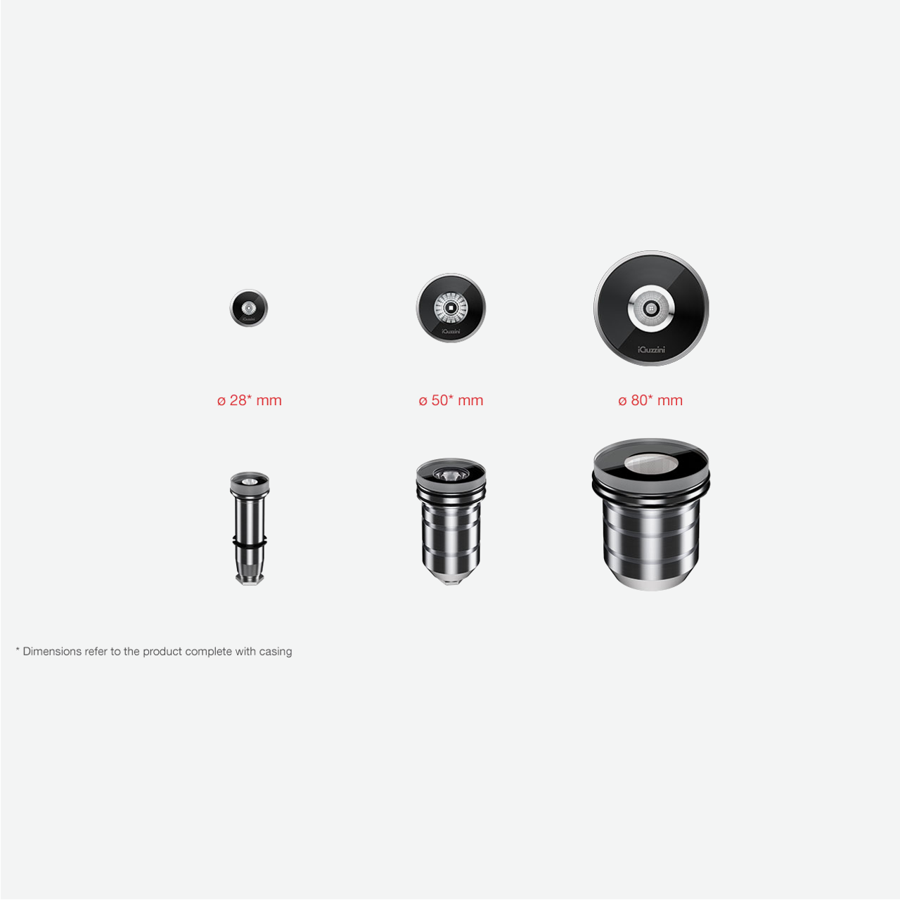- Casing in polypropylene plastic complete with AISI 304 stainless steel ring, to be ordered separately.