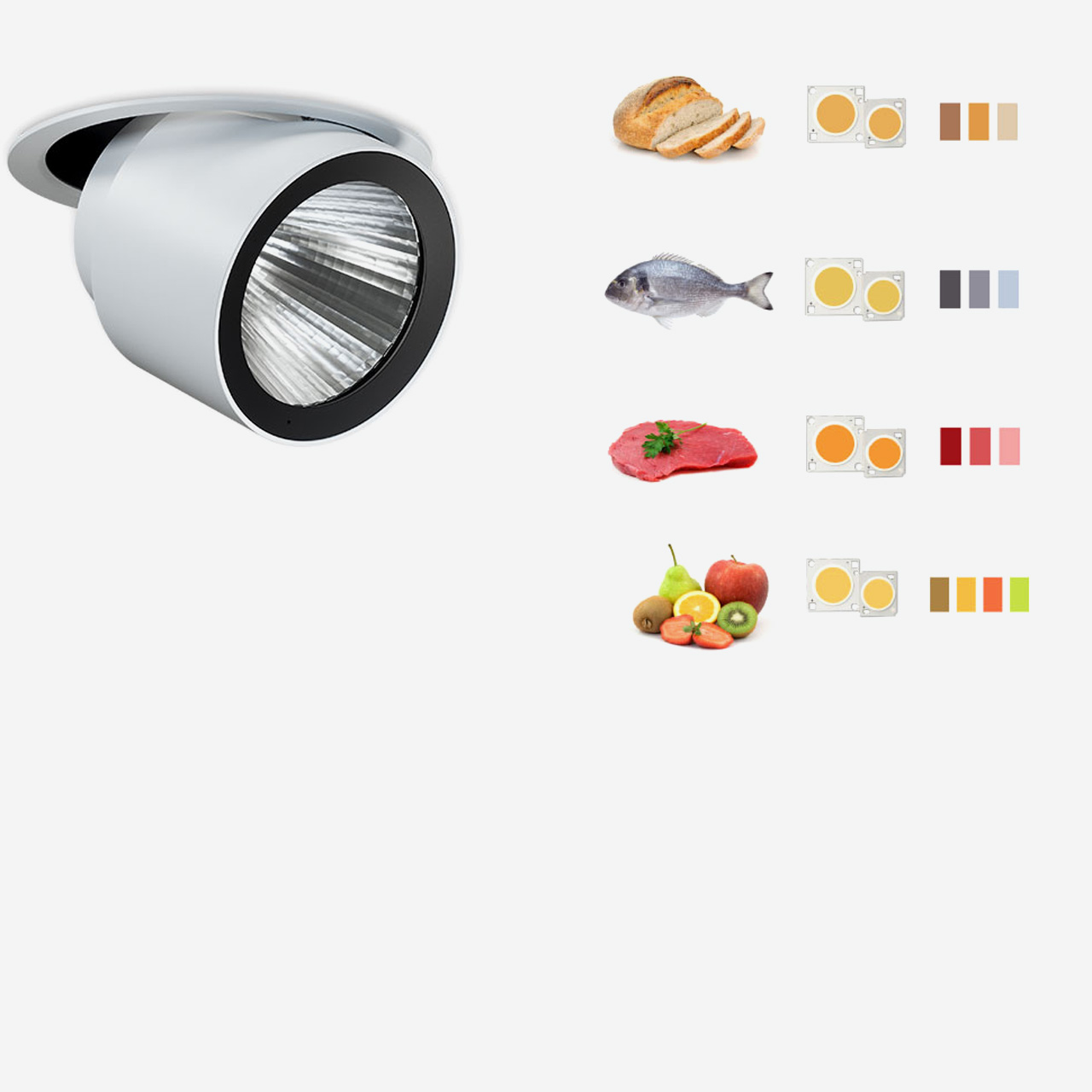 - High performance interchangeable reflectors with high luminous efficiency and homogeneous distribution.
